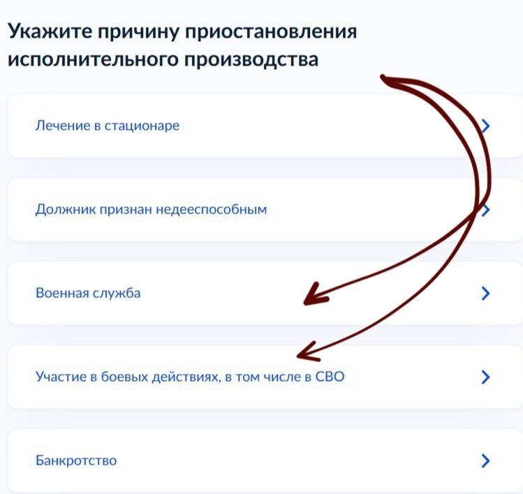❕Для военнослужащих действия аналогичные как на видео, только вместо графы «банкротство» выбираем «военнослужащий» «участие в боевых
