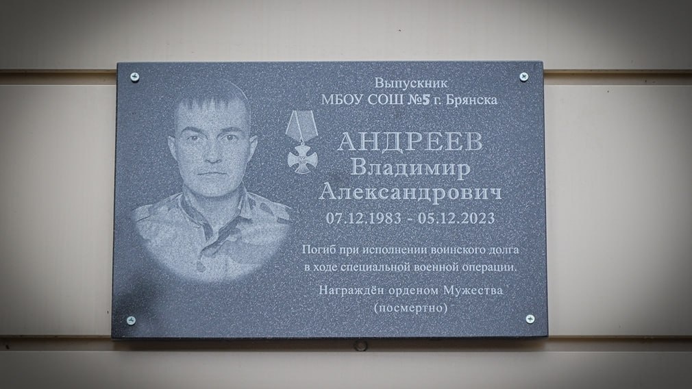 ▫️В Брянске увековечили память разведчика Владимира Андреева. Он героически погиб в ходе проведения специальной военной операции. ▫️Памятную доску установили на стене школы № 5. Владимир Андреев является выпускником этого общеобразовательного учреждения. ▫️Первого сентября 2023 года Владимир Андреев добровольно заключил контракт с Минобороны России. Службы проходил в отдельном разведывательном батальоне «Пересвет». ▫️До своего 40-летия разведчик не дожил всего два дня. В декабре 2023 года по пути на боевое задание жизнь «Карачижа» оборвал беспилотник, попавший в машину. ▫️Его семья хранит полотнище российского флага и орден Мужества, который «Карачиж» получил посмертно. Фото: пресс-служба Брянской городской администрации
