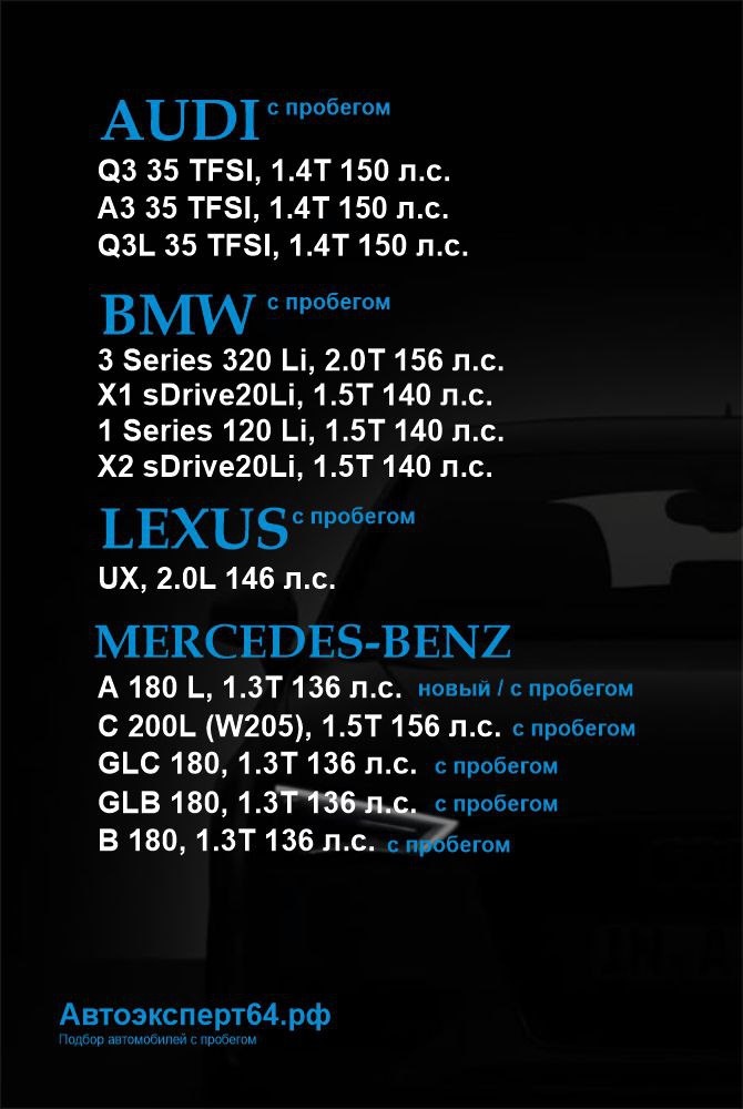 Audi, Mercedes-Benz, BMW, Mazda, Honda, Toyota, Volkswagen, Skoda, Nissan, Kia, Hyundai и другие бренды, которые остаются доступными в прежнем ценовом диапазоне.