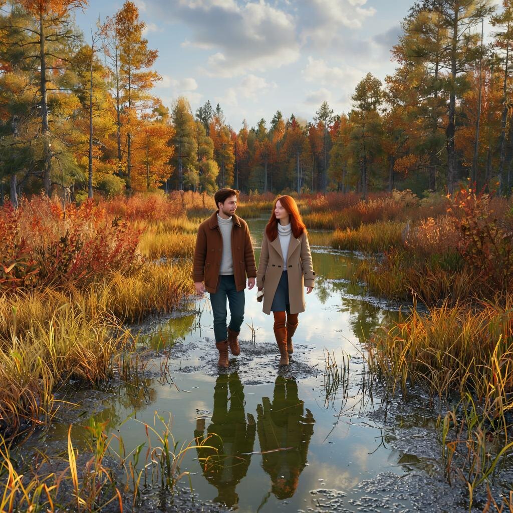 На улице было пасмурно, да и время подходило ближе к вечеру, когда мы с мужем вновь отправились на болота. Низкие тучи нависали над головой, словно серые покрывала. Воздух был густым и влажным. "Нам ещё только дождя не хватало для полного счастья", - мелькнула мысль.