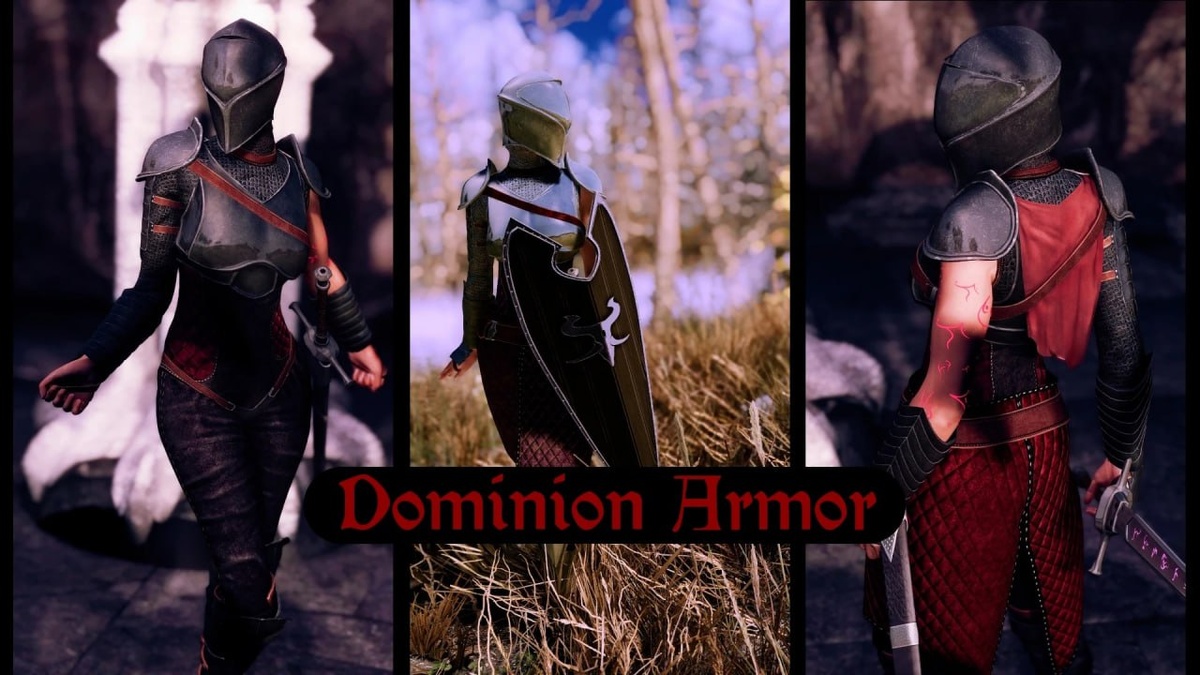 Доминионская броня Тематическая тяжелая броня рунного рыцаря для женских персонажей, выполненная в различных цветах и стилях. Включает меч и щит. Особенности • Цвета: фиолетовый, красный, зеленый и синий. • Кожа: черная или коричневая (меняется только для туловищной части костюма, штаны всегда будут черными). • Альтернативные варианты: для каждой цветовой вариации присутствуют версии с юбкой и без. • Оружие: меч и щит. Щит также поставляется в четырех цветовых вариациях. Руны: здесь представлены четыре руны для каждого цвета с различными эффектами. • Красный: сопротивление огню. • Синий: сопротивление холоду. • Фиолетовый: сопротивление электричеству. • Зеленый: сопротивление ядам. Дополнительные текстуры, доступные в опциональных файлах: делают броню ярче и добавляют рунный глаз на переднюю часть шлема, дабы объяснить зрение. Получение Кузница. Вам нужен перк стальной ковки. Для крафта рун вам необходим 50-ый уровень зачарования. Автор: Collygon Локализатор: Nocturn 📌 Версия