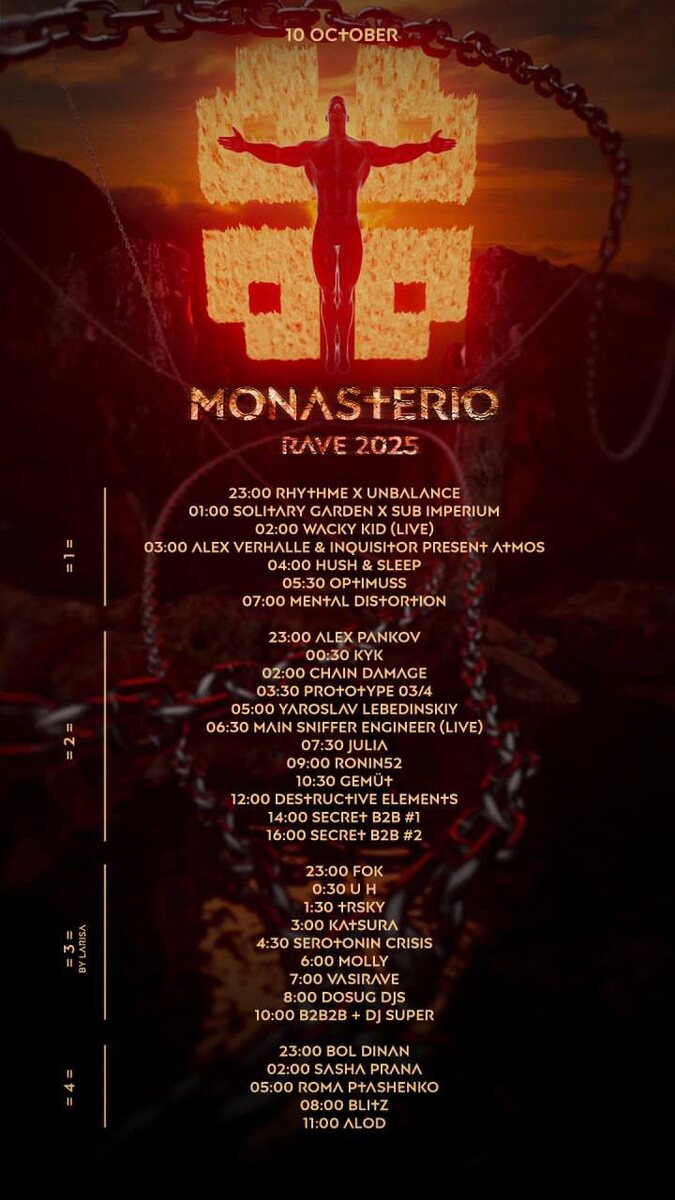 Расписание Monasterio Rave на сегодня. Сохраняем на телефоны.