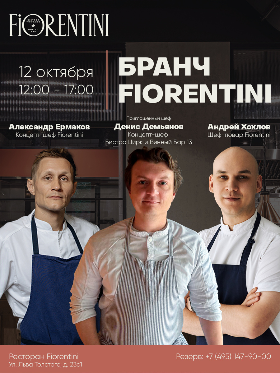 Fiorentini, известный своими коллаборациями с талантливыми шеф-поварами, представляет новый гастрономический опыт: 12 октября с 12:00 до 17:00 бистро объединяет усилия с бистро “Цирк” для проведения уникального бранча в формате a la carte. Изюминкой мероприятия станет эксклюзивное меню, разработанное специально для этого события. Гостей ждут авторские блюда, созданные шеф-поварами двух заведений и не представленные в их постоянных меню. Это единственная возможность попробовать эти кулинарные шедевры. Творить на кухне в этот день будут сразу три шеф-повара: концепт-шеф Fiorentini Александр Ермаков, шеф-повар Андрей Хохлов и концепт-шеф бистро “Цирк” Денис Демьянов. Они представят сбалансированное и оригинальное меню. В меню бранча включены: мусс из куриной печени с бриошью, хумус с яйцом пашот, хот-дог с сосиской из креветок, утиная грудка с персиком, ньокки с копчёной рикоттой, говяжья грудинка с йоркширским пудингом, павлова с хурмой и маритоццо с шоколадным кремом. Fiorentini – это а