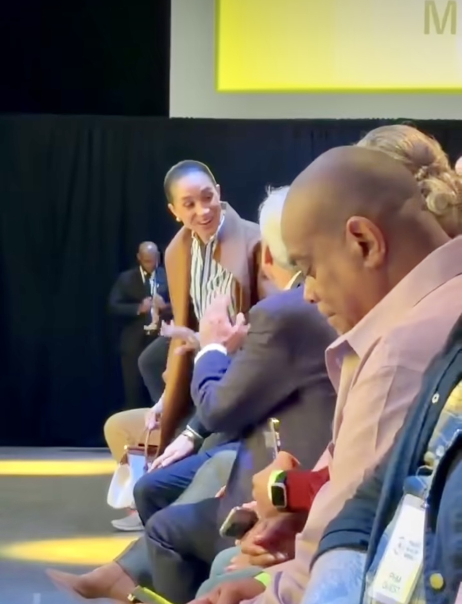 Неутомимая парочка, возведенная в ранг " Гуманисты года" структурой, в которой они тебе соорганизаторы, только что появились на общественной дискуссии в Нью-Йорке. Что могу сказать...Кучно пошло. Только вот впервые с досвадебных королевских времен богиню позвали на модное дефиле. Затем премия, хоть какая закудышная, зато звучит громко. И вот тебе очередное повышение в статусе общественников-активистов. Дискуссия! Сидят в первом ряду. Правда, никто не пал ниц ( кроме фотографа на коленках от организаторов- да и то ради кадра), даже не кивнул головой , кроме организатора, что сидел рядом. Как сообщил представитель монтеситских болот, "Герцог и герцогиня Сассекские прибыли в студию Spring Studios в Нью-Йорке, чтобы провести утро, наполненное вдохновляющими беседами и содержательными дискуссиями". Ну-ну... Содержательными говорите ? Уверена- мы заранее знаем, что скажут наши любимые гуманитарии. Насчет наряда герцогини: на ней новые джинсы с завышенной талией и кроем bootcut( клеш)