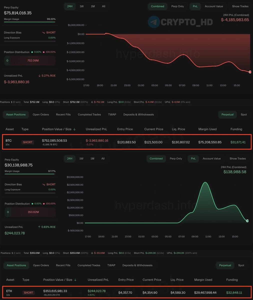 ΠΏΠ»Π΅ΡΠΎΠΌ Π½Π° $752,085,508. Π¦Π΅Π½Π° Π»ΠΈΠΊΠ²ΠΈΠ΄Π°ΡΠΈΠΈ: $130,807. β SHORT ΠΏΠΎ ETH Ρ 12Ρ