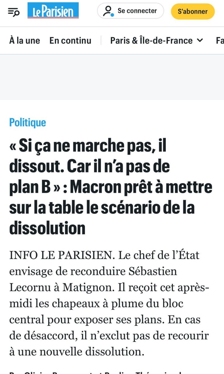 Макрон готов вновь назначить Лекорню премьером или распустить парламент — Le Parisien «Президент Франции сегодня проводит встречу с лидерами центрального блока, чтобы обсудить формирование нового правительства. В случае неудачи переговоров он не исключает роспуска парламента и назначения нового состава», — пишет издание. Дважды в одну реку все-таки входят? 👍 БайБайден. Подписаться