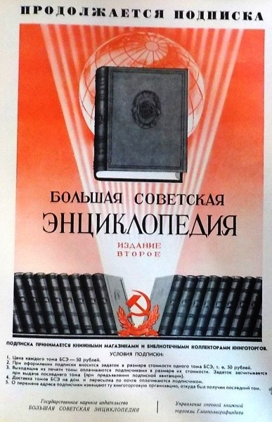 Поэтому так важно было напомнить гражданам, что продолжается подписка на Большую Советскую Энциклопедию.