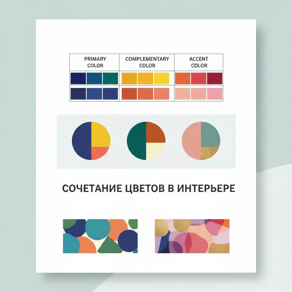 Подобрать цвета для интерьера — это как собрать пазл: когда все части на своем месте, рождается гармоничная картина. Но с чего начать, если вы не дизайнер? Не нужно штудировать сложные книги по колористике! Достаточно знать несколько фундаментальных правил и иметь под рукой простую «шпаргалку». Это главный принцип, который не даст вам перегрузить пространство. Поделите палитру комнаты на три части: Пример: Стены светло-серые (60%), диван и ковер темно-синие (30%), а подушки и рамки для фото — горчичного цвета (10%). Вместо таблицы — удобный список. Выберите основной цвет и используйте предложенные комбинации. 1. СЕРЫЙ 2. СИНИЙ 3. ЗЕЛЕНЫЙ 4. БЕЖЕВЫЙ 5. ФИОЛЕТОВЫЙ 6. ТЕРАКОТА Начните с монохроматической схемы. Это самый безопасный и стильный вариант. Выберите один цвет и используйте его разные оттенки. Например: стены — светло-серые, диван — средне-серый, а подушки — графитовые. Добавьте текстуры (дерево, металл, кожа), чтобы интерьер не стал плоским. Вывод: Сочетание цветов — это не с