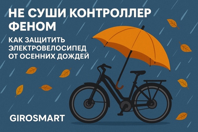 Большинство электровелосипедов (и самокатов) имеют степень защиты IP54. Это значит, что они защищены только от мелких брызг и пыли, но не от потоков воды, луж и осенних ливней.