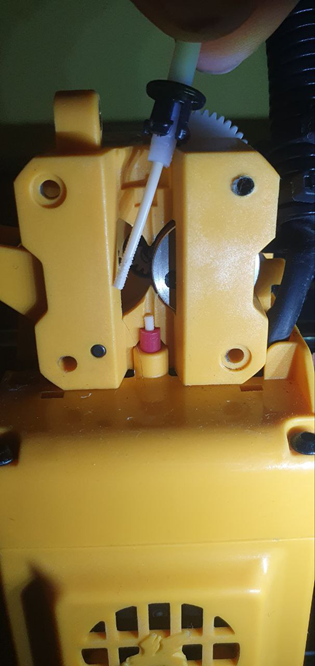 Многострадальный GHOST 6, о котором я много писал в блоге (тыц тыц тыц тыц)в очередной раз встал колом. Просто перестал переваривать филамент. Сначала проблема была в недотянутых шестернях экструдера, теперь пластик не идет в сопло, при этом сопло чистое. Вскрыв крышку экструдера, увидел обломанный пруток – причина ли это плохого пластика, я не знаю. Оставшийся даже на разогретой голове не вылезает :( Буду разбирать и смотреть по новой, пока что руки не дошли. Наработка после замены хотэнда часов 30. Досадно.