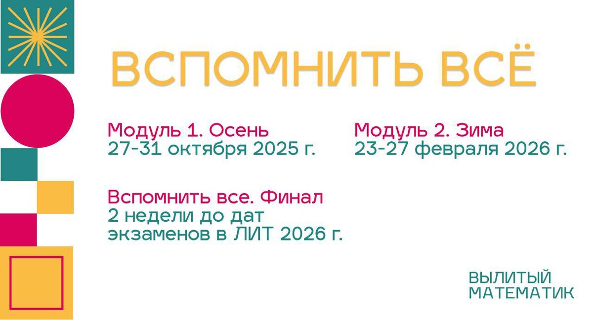 Уважаемые родители! В этом учебном году назначаем даты осеннего и зимнего потоков интенсива «Вспомнить все» заранее. Спешим поделиться с вами — теперь планировать участие и отдых станет проще! 🔥Название интенсивов «Вспомнить все» говорит само за себя. За 20 занятий в неделю повторяем все самое важное и основополагающее. Никаких отвлеченных заданий — строго по делу, но насыщенно и интересно с учетом возрастных особенностей наших юных учеников! Для тех, кто уже учил, но не до конца понял, не во всем уверен или еще раз хочет проверить себя и убедиться, что все знает. Модуль 1. Осень🍃 Даты: 27-31 октября 2025 г. Время: 9:00-12:45 Адрес: Вавилова 60к4 Стоимость: 30.000₽ 20 занятий в неделю (математика, русский, английский) Вспоминаем базу первого полугодия, без которой не обойтись дальше. Доводим основы до автоматизма. Модуль 2. Зима❄️ Даты: 23-27 февраля 2026 г. Время: 9:00-12:45 Материал середины учебного года. После этого модуля сложные темы актуального года больше не вопрос. Вспо
