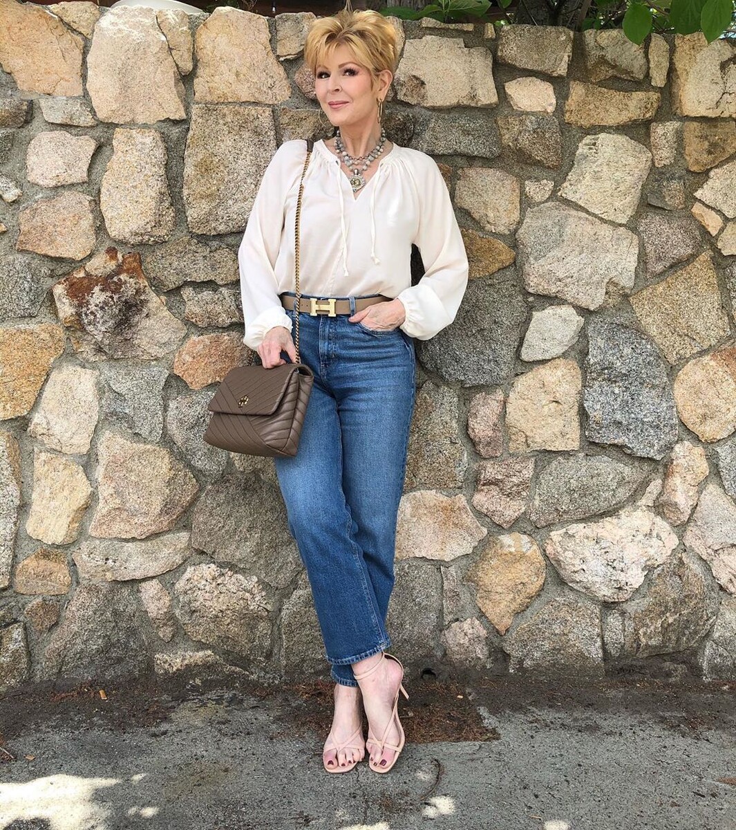 - Практический совет: Ваш лучший друг — джинсы с высокой или средней посадкой (High/Mid Rise). Они должны доходить до вашей естественной талии или быть чуть ниже. Такая модель поддержит живот, красиво обозначит линию талии и визуально вытянет ноги. Это самое важное правило для женщин после 35.