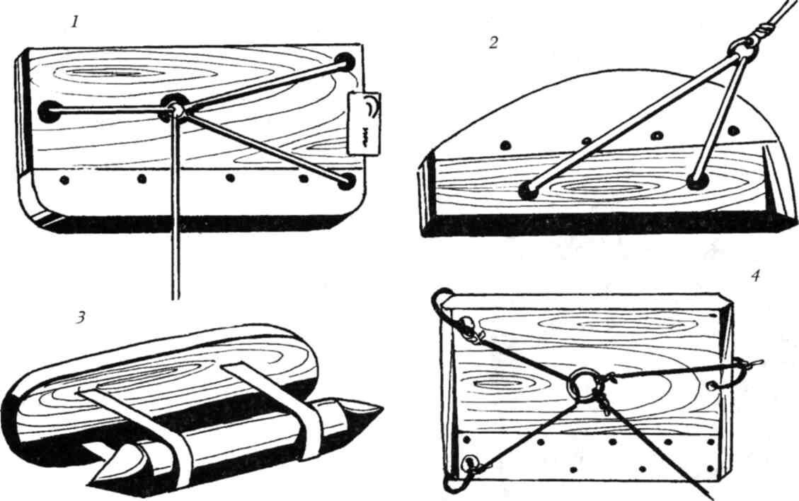 Дощечка крепится к основной леске так, чтобы получился эдакий водяной змей. Выставив его углом к течению можно добиться чтобы он под его давлением уходил от берега. А на леске рядом с ним поводки с приманкой.