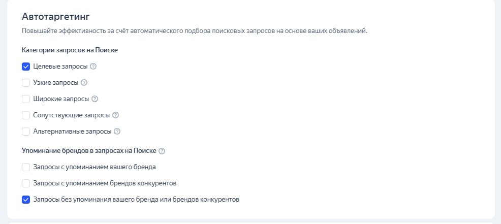 Это позволит алгоритму фокусироваться именно на поисковых запросах, связанных с вашим продуктом, а не расширять показы на сопутствующие или околотематические категории.