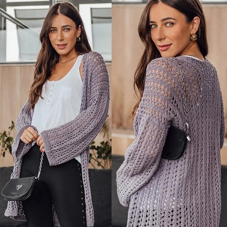 Струящийся кардиган в пол — это уже не просто одежда, это стиль жизни. Он создает красивые, пластичные линии, добавляет образу загадочности и женственности. Такой кардиган может заменить легкое пальто в прохладные дни и станет идеальным спутником для романтических прогулок.