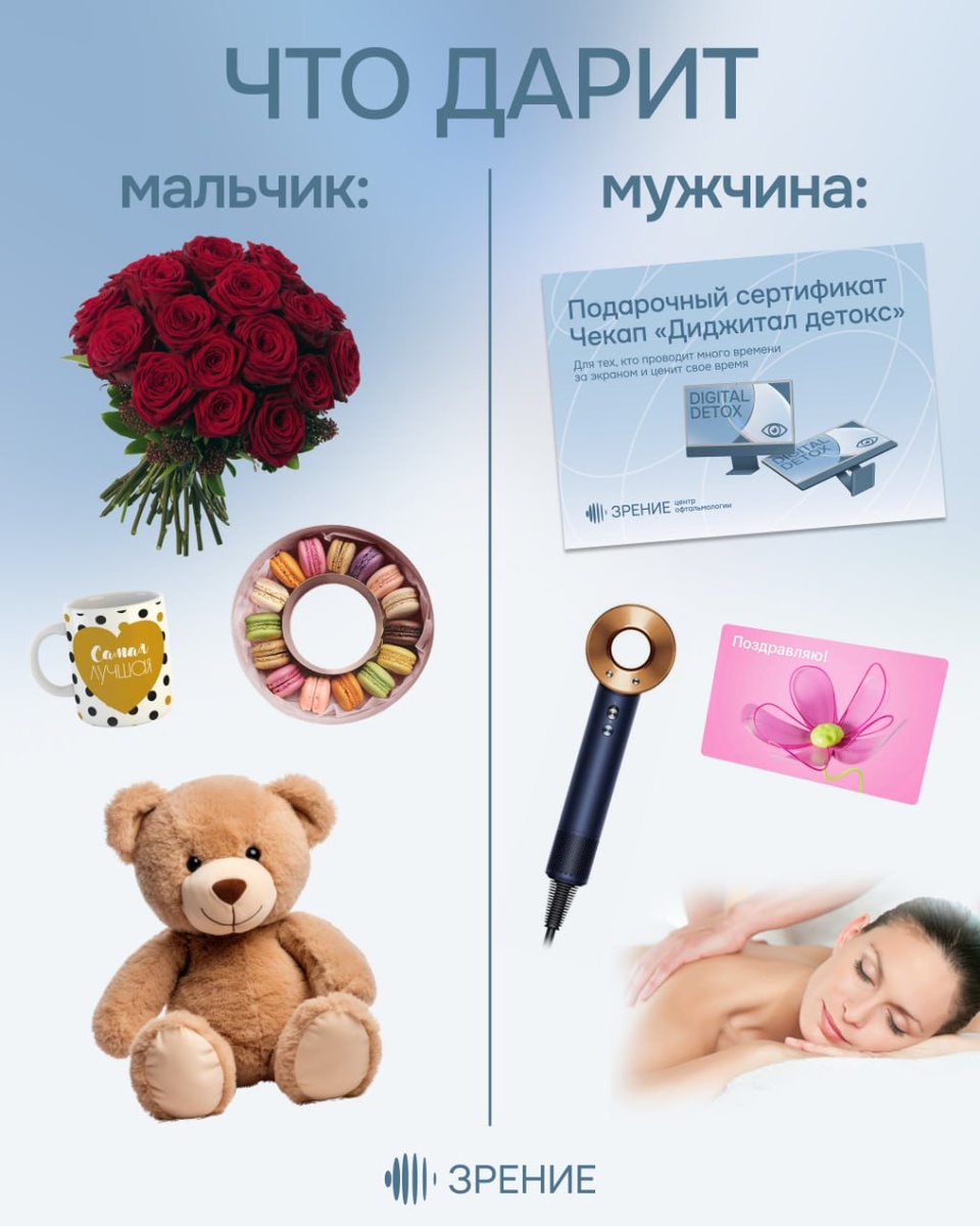 Подарки бывают разные… Один дарит то, что радует глаз. Другой — заботится о ваших глазах. Для тех, кто выбирает заботу, у нас есть чекап «Digital Detox», в который входит: 🔵 проверка зрения 🔵 диагностика сухости глаз 🔵 обследование сетчатки 🔵 рекомендации врача, как снизить нагрузку и защитить глаза Подарите себе или близким здоровье глаз — иногда лучший подарок тот, который действительно нужен 👀💙 Записаться можно: 🔵через кнопку «записаться» 🔵на сайте 🔵по телефону +7 (812) 603 86 05
