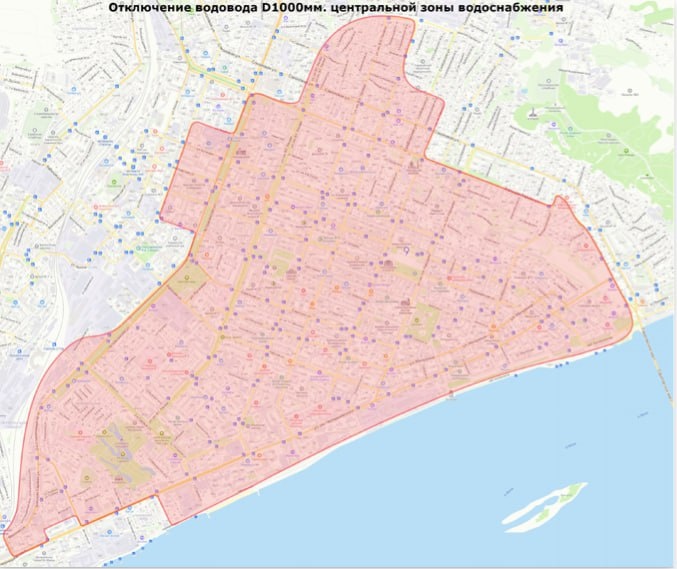 Схематически зона отключения холодной воды обозначена на прилагаемой карте. Карта крупнее и список адресов, где не будет воды (тык-тык).