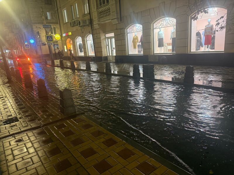На Буденновском, Семашко и Соборном вода залила дороги до самого бордюра. Система ливневой канализации в центре города не справляется с таким объемом воды, и пешеходам приходится передвигаться по щиколотку в воде. Водители автомобилей также испытывают трудности: им приходится буквально плавать по дорогам, погружая колеса в бурлящую воду.