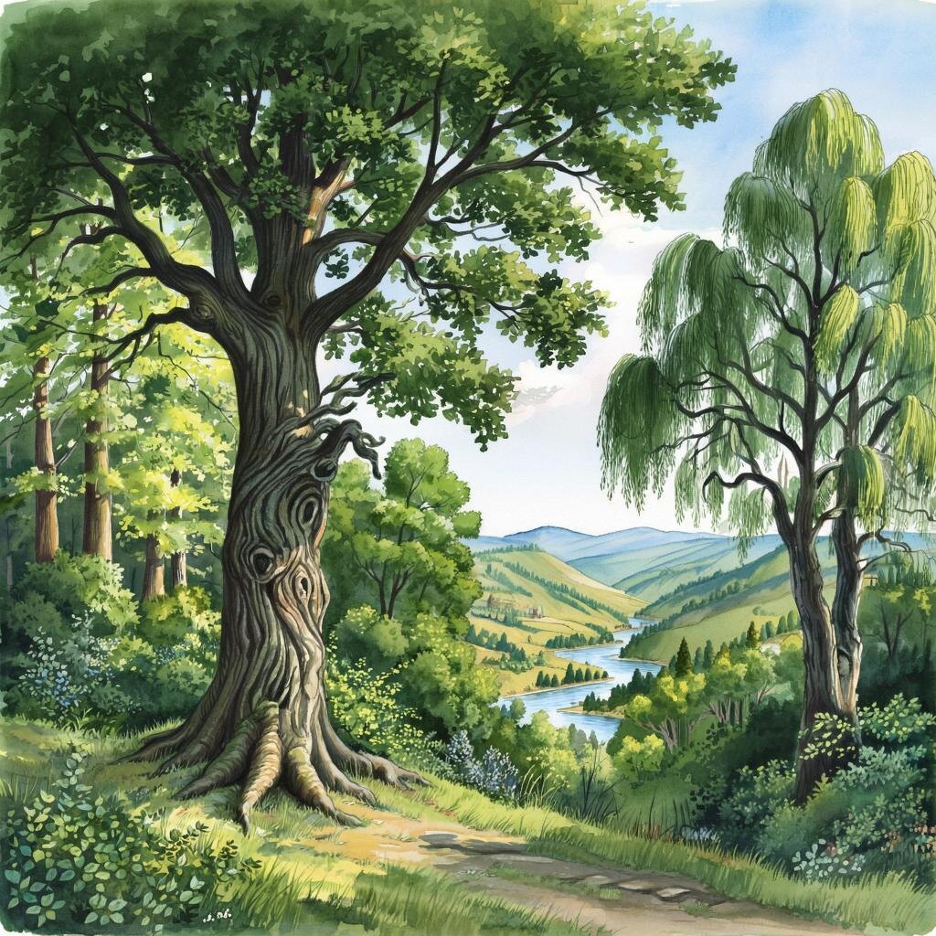 · Причерноморье: Доминировали разнотравно-злаковые степи с обильным включением мезофильного разнотравья (бобовые, сложноцветные). В балках и речных долинах произрастали густые широколиственные леса из дуба, вяза, липы, ясеня. Лесистость была значительно выше современной.