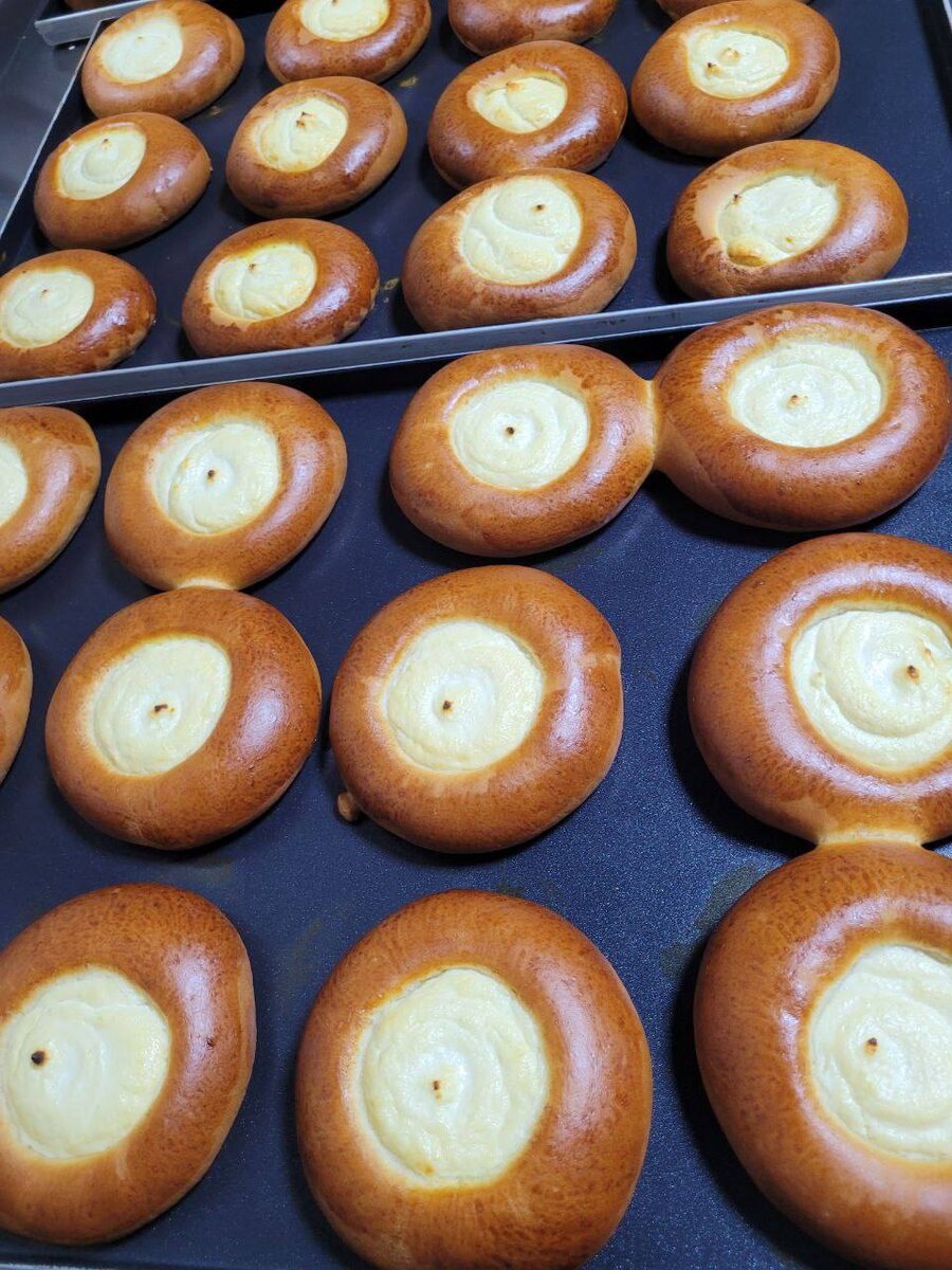 Ватрушки на линии Rusimex Uni Compact 😋 С помощью нашей автоматической пекарной линии можно делать самые разнообразные изделия. Мы всегда сопровождаем наших клиентов ⚙️ Так, недавно был осуществлен выезд технолога на производство для осуществления технологической поддержки. Клиент дал задание запустить новое изделие - ватрушку. Наши специалисты адаптировали рецептуру под линию, настроили формовку тестовых заготовок и укладку их на противни с помощью автоукладчика. Творожная начинка же отсаживается вручную после выхода тестовых заготовок с линии. Взгляните, какая красота у нас получилась в итоге!😍