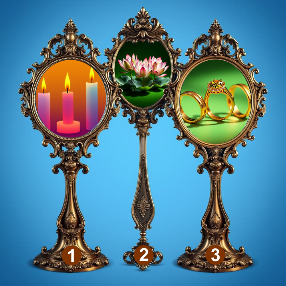 Иногда судьба даёт нам знаки не через слова, а через образы. Как будто всё уже известно, просто нужно на минуту остановиться и прислушаться к себе. Перед вами три зеркала: одно со свечами, второе с цветком, третье с кольцами. Каждое из них хранит своё отражение — то, что вот-вот войдёт в вашу жизнь. Посмотрите внимательно и выберите то зеркало, к которому потянулась душа.