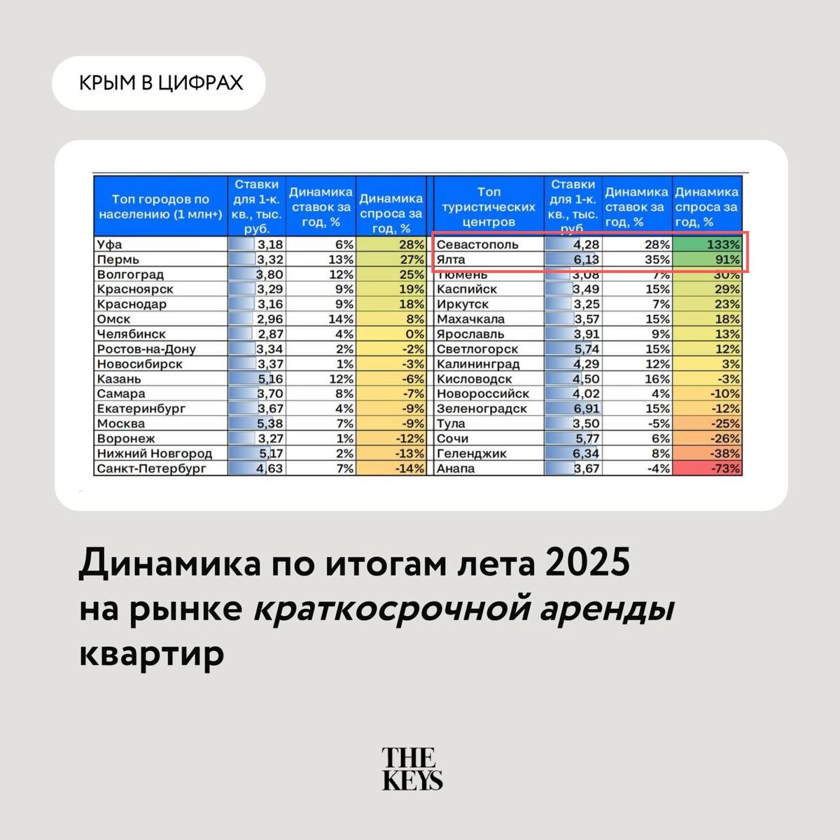 НО: не в Крыму и Севастополе – здесь спрос и арендные ставки растут 📈