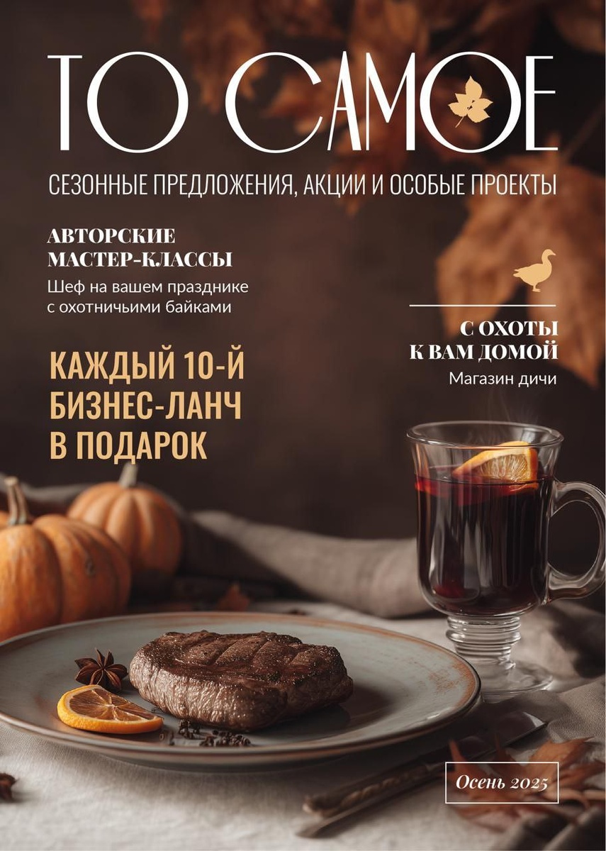 Мы придумали другое решение! А что, если сделать специальный осенний выпуск — небольшой журнал А5 со всей информацией, акциями, предложениями? Обложка в стиле всех журналов с заголовками статей, рассказыаем о шефе, сезонном меню, корпоративах и спец предложениях.