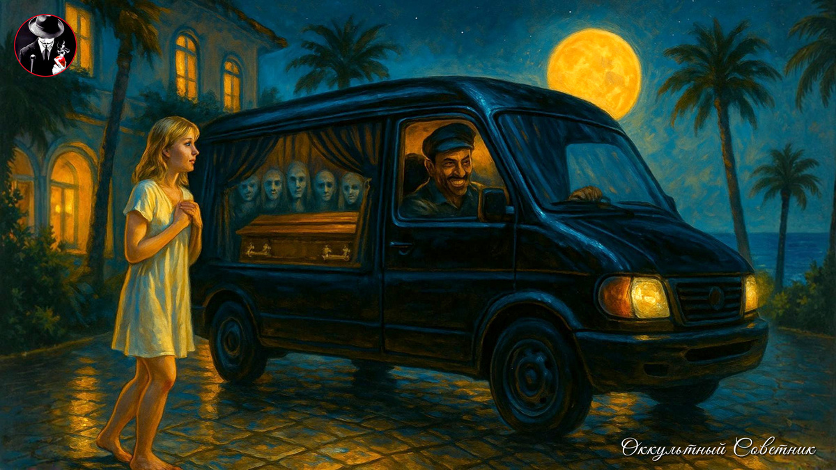 Прямо перед входом в отель стоял небольшой автобус. Чёрный, весь чёрный, от колёс до крыши. Даже стёкла были затонированы так густо, что казались нарисованными углём. На окнах колыхались чёрные прозрачные занавески, и сквозь них... сквозь них Вера увидела то, что заставило её сердце пропустить удар.