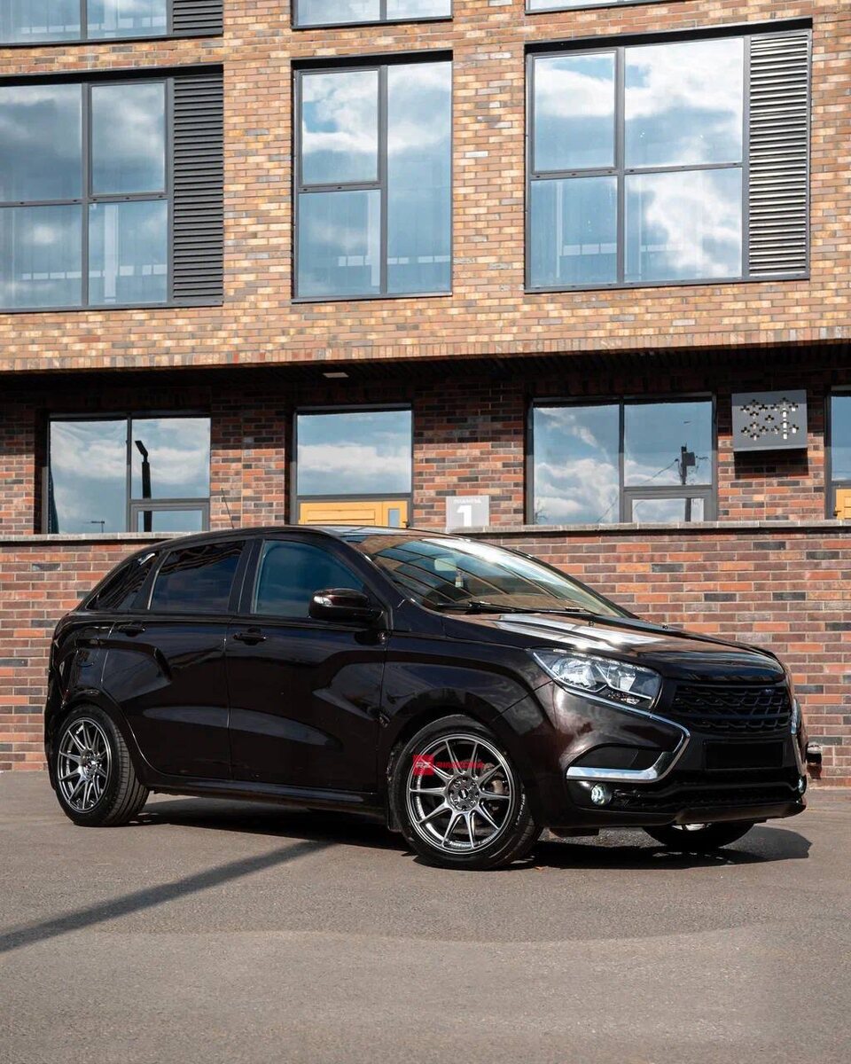 Vesta Cross на литых 17-дюймовых дисках в стиле Vorsteiner VFF-107: энергичный узор прекрасно сочетается с профилем кузова🤌🏻