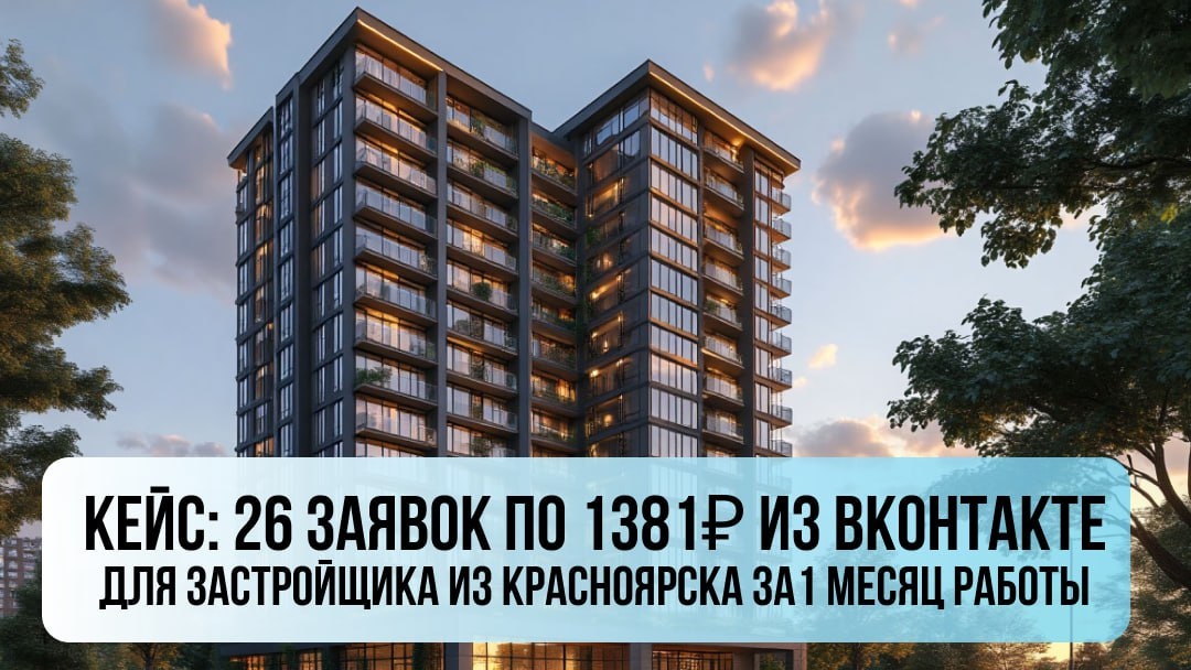 КЕЙС: 26 заявок по 1381₽ с рекламы ВКонтакте для застройщика из Красноярска за 1 месяц