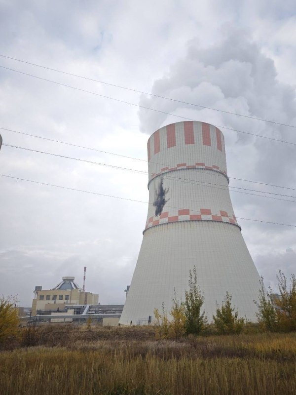 Энергоблок №6 Нововоронежской АЭС работает в штатном режиме после атаки дрона. Специалисты провели лазерное сканирование для оценки повреждений. На градирне остался темный след от взрыва дрона. Это не влияет на ее работу, снижений нагрузки не ожидается.