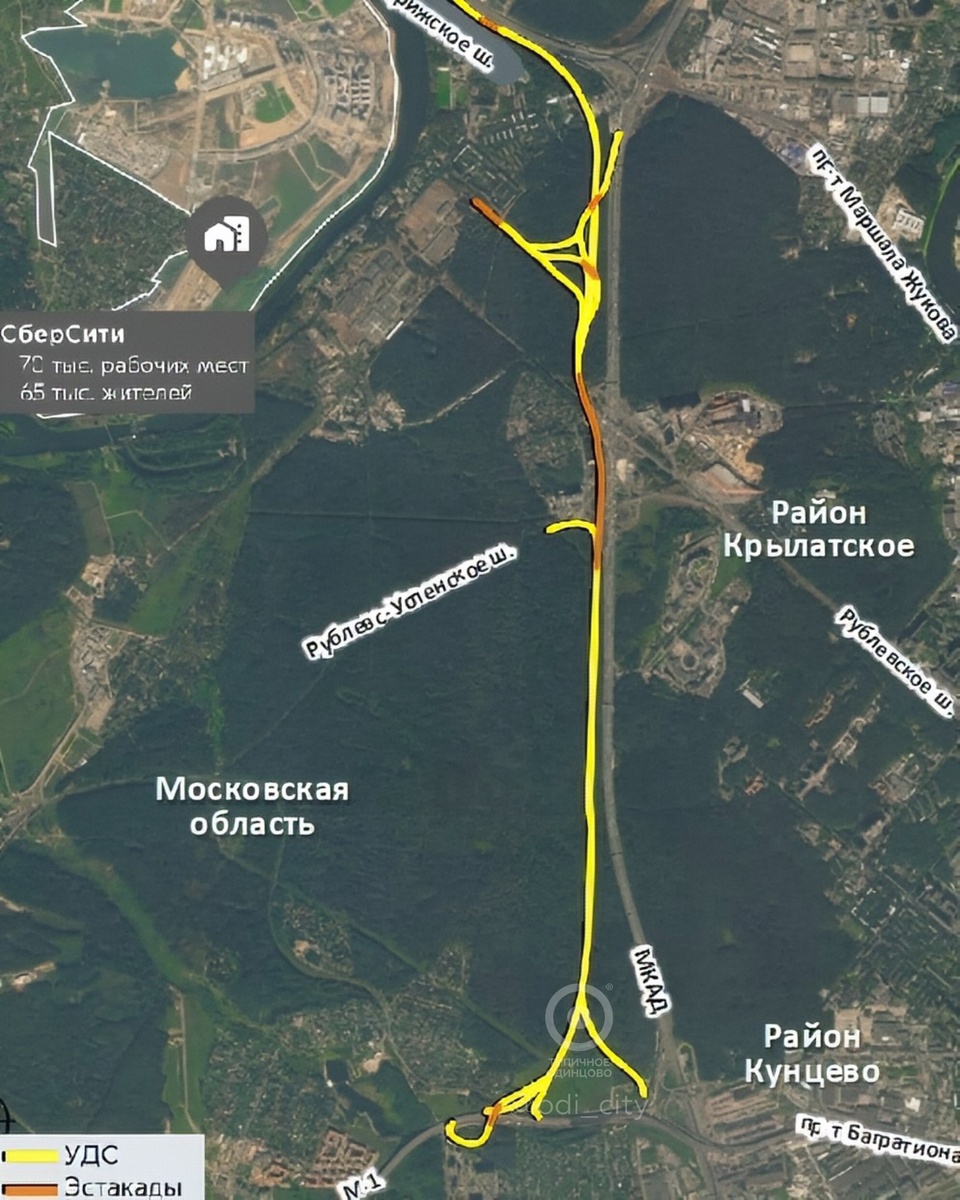 ❗️Объявлен конкурс на строительство новой платной трассы от Новорижского шоссе до Северного обхода Одинцово Протяжённость новой дороги составит до 21 км, а количество полос будет варьироваться от 2 до 4. Также трасса будет иметь эстакады, соединяющие её с Рублёво-Успенским шоссе и со «Сбер Сити». Инфраструктурный комплекс объекта включает 3–4 многоуровневые развязки, мост через Москву-реку, 6 путепроводов и 3 эстакады. Взимание платы будет полностью автоматизировано по технологии «свободный поток». Одной из основных задач появления такой трассы является позволить жителям «Новой Риги» без пробок добираться до проспекта Багратиона и попадать в район «Москва-Сити». При этом, как отмечают местные активисты, дорога затронет природу Ромашковского леса, излюбленного места отдыха для тысяч человек. Источник: Открыть