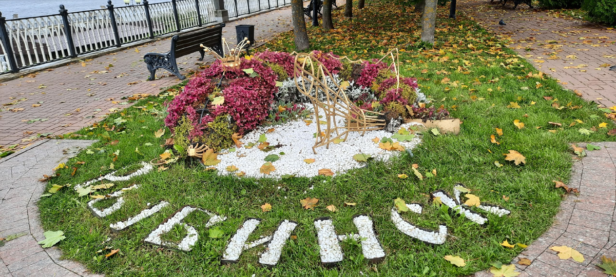 Пройдя несколько шагов вперед по улице, мы зашли в Карякинский сад - городской парк, который, несмотря на осеннюю погоду, встретил нас яркими красками цветов, кустарников, деревьев.