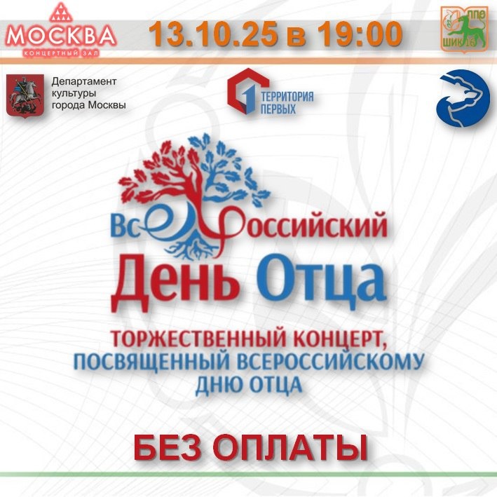 🎤 Торжественный концерт, посвященный всероссийскому Дню Отца 📆 13 октября в 19:00 🏛 КЗ «Москва», Остров мечты, метро «Технопарк» 👛 БЕЗ ОПЛАТЫ В концерте примут участие: Лев Лещенко Лариса Долина Денис Майданов Николай Расторгуев и группа «Любэ» Ольга Кармухина Дмитрий Маликов Инна Маликова Михаил Шафутинский Сергей Войтенко Руслан Алехно Гоша Куценко Сосо и Леван Павлиашвили Денис Клявер Джанго Александр Иванов Майвл Русский народный хор им. М.Е.Пятницкого Балет Аллы Духовой «Тодес» ‼Спешите увидеть и услышать любимых артистов 📝Запись в комментариях к посту в telegram-канале ПРОФКОМА ☎Убедитесь, что Ваша заявка принята! Сообщите председателю ППО #ДеньОтца