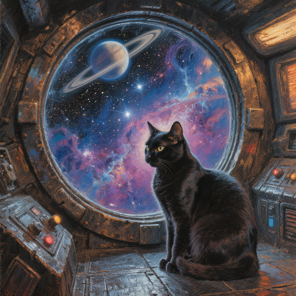 И здесь начинается настоящая фантастика. Без лишних слов, только через действия кота и детали обстановки читатель понимает: произошло нечто странное и масштабное. Тихо жужжит система жизнеобеспечения, мигают аварийные датчики, в проёме двери мелькает тень.