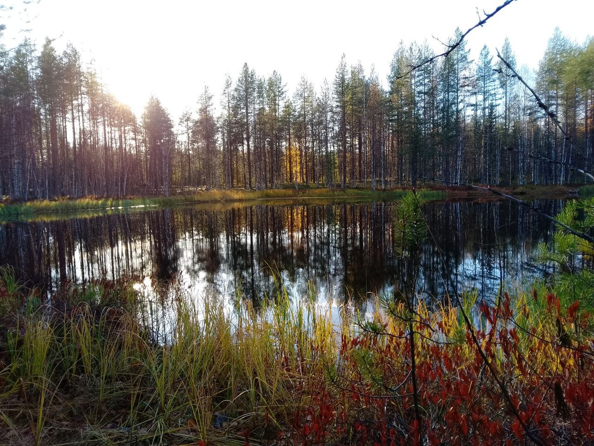 В моём телефоне северная золотая осень. Мне шлют фотографии прямо из тайги. Внимательно рассматриваю каждый кадр. Вглядываюсь в знакомые мне места, ощупываю взглядом каждый уголок, поглаживаю взглядом стволы, веточки, травинки. Вдыхаю влажный, прохладный, пронзительно звонкий октябрьский воздух леса. Таким он бывает только осенью. И только на севере. Скучаю ли я? Конечно! Эти пейзажи для меня родные. Среди них я выросла. Среди них прожила большую часть жизни. Эти цвета, звуки, запахи, эти силуэты уже навсегда со мной. Они в моей крови, в матрице моей души. Вот наши лесные избушки. Осматриваю их чуть пристальнее. По-хозяйски. Совсем не изменились. Сколько счастливых дней здесь прожито! Сюда мы приводили своих детей совсем ещё малышами. Сколько вёрст протопано большими и маленькими ножками в резиновых сапогах и сапожках по лесным дорогам и тропкам, через болота и заросшие овраги, через берёзовые пролески и сосновые боры. С рюкзаками на плечах. А в рюкзаках пара сухих тёплых носочков н