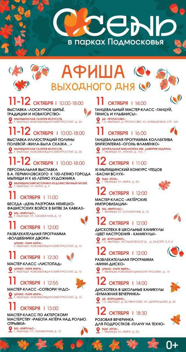 Афиша на дождливые выходные в Мытищах.