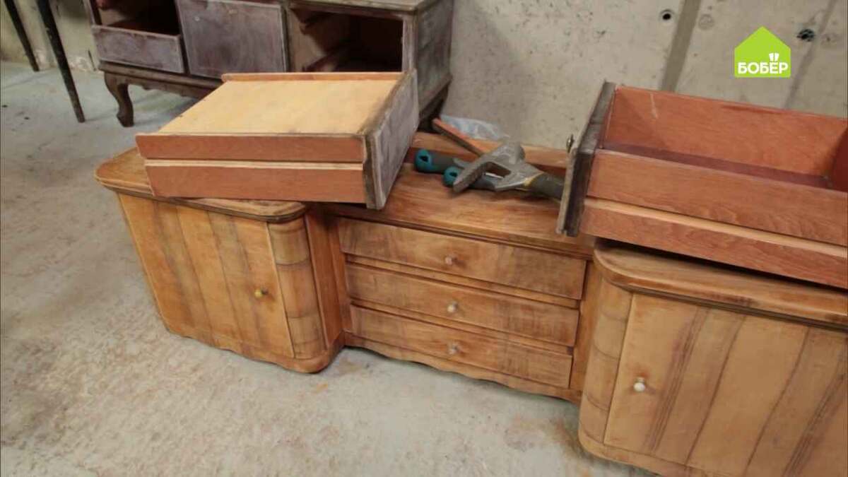 Из остатков мебели разного типа можно довольно легко смастерить очень оригинальный и необычный предмет интерьера. Творите! Обработайте наждачной бумагой мебель, чтобы краска лучше легла. При помощи бензопилы уберите ненужные части. Прикрутите ножки туда, где это необходимо. Чтобы стеллаж выглядел стильно, заранее продумайте композицию. Части будущего стеллажа покрасьте краской выбранного цвета. Дайте краске полностью высохнуть и прикрутите ручки. Соедините элементы стеллажа при помощи железных уголков между собой. Чтобы старая древесина не потрескалась во время сборки, рекомендуется заранее просверлить отверстия в местах крепежа. Сделайте конструкцию отдельно стоящей или прикрепите к стене. ✅ Наш канал, здесь много интересного → zen.yandex.ru/bober
