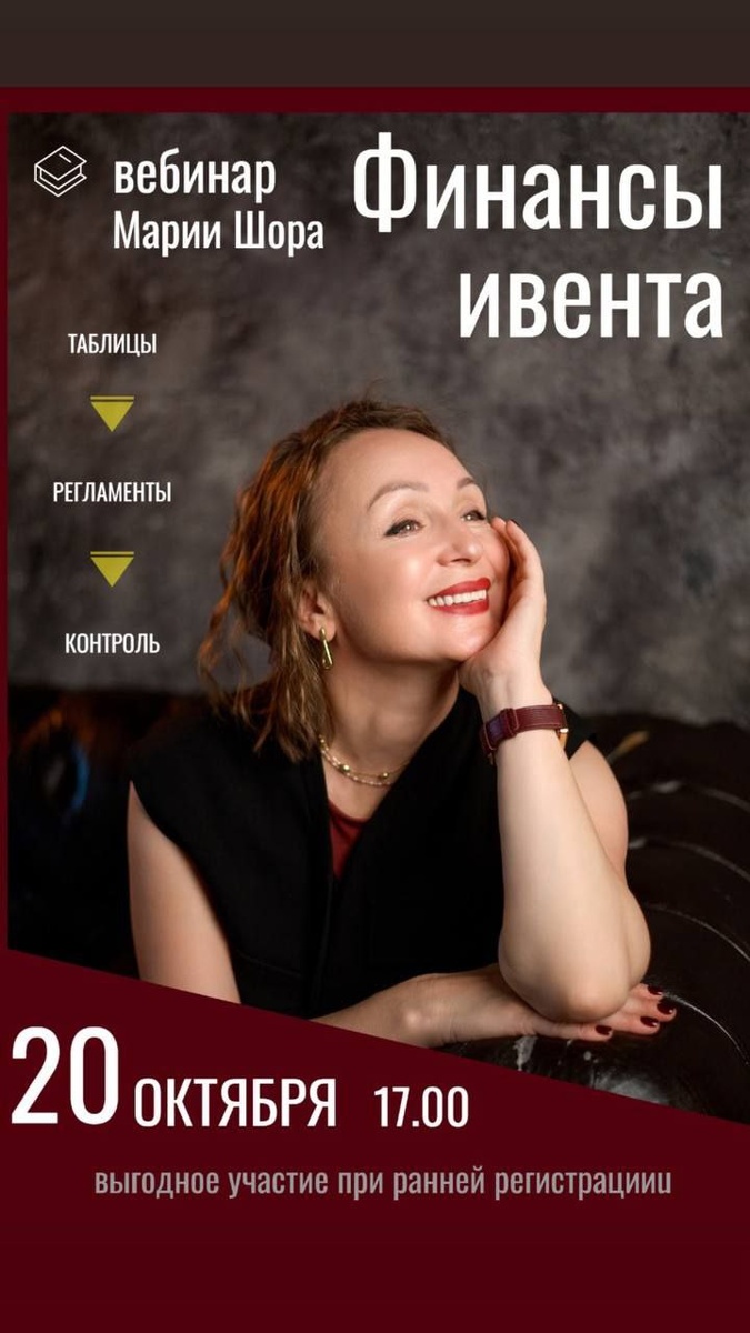 🗣Деньги ивента🗣 #20октября2025 #онлайн ⏰ 17:00 📍 онлайн 💰 Стоимость 5.555 руб до 14.10 ❗️ Регистрация Долгожданный вебинар! Просили?! ЗАБИРАЙТЕ!! Деньги в кассе есть, а прибыли нет? Ты руководите ивент-агентством, но не можешь ответить: -Сколько у тебя реальной прибыли? -Почему деньги на счете — это не твои деньги? -Где теряется доход и кто за это отвечает? -Разделишь свои деньги и деньги бизнеса Пришло время взять деньги под контроль. 20 октября в 17:00 — мой вебинар «Деньги ивента». Всего за 1,5-2 часа ты получишь готовую систему: ✅ ДДС: Прекратишь финансовый хаос. Будешь точно знать, сколько денег в кассе и на что они предназначены. ✅ ОПиУ: Увидишь реальную прибыль бизнеса. Перестанешь работать в ноль. ✅ Регламенты: Четко распределишь, кто за что отвечает в финансах. Уберешь потери и неразбериху. Итог: ты будешь принимать решения на основе цифр, а не догадок, и начнешь забирать из бизнеса СВОЮ чистую прибыль. Стоимость: — До 14 октября: 5 555₽ — После 14 октября: 7 77