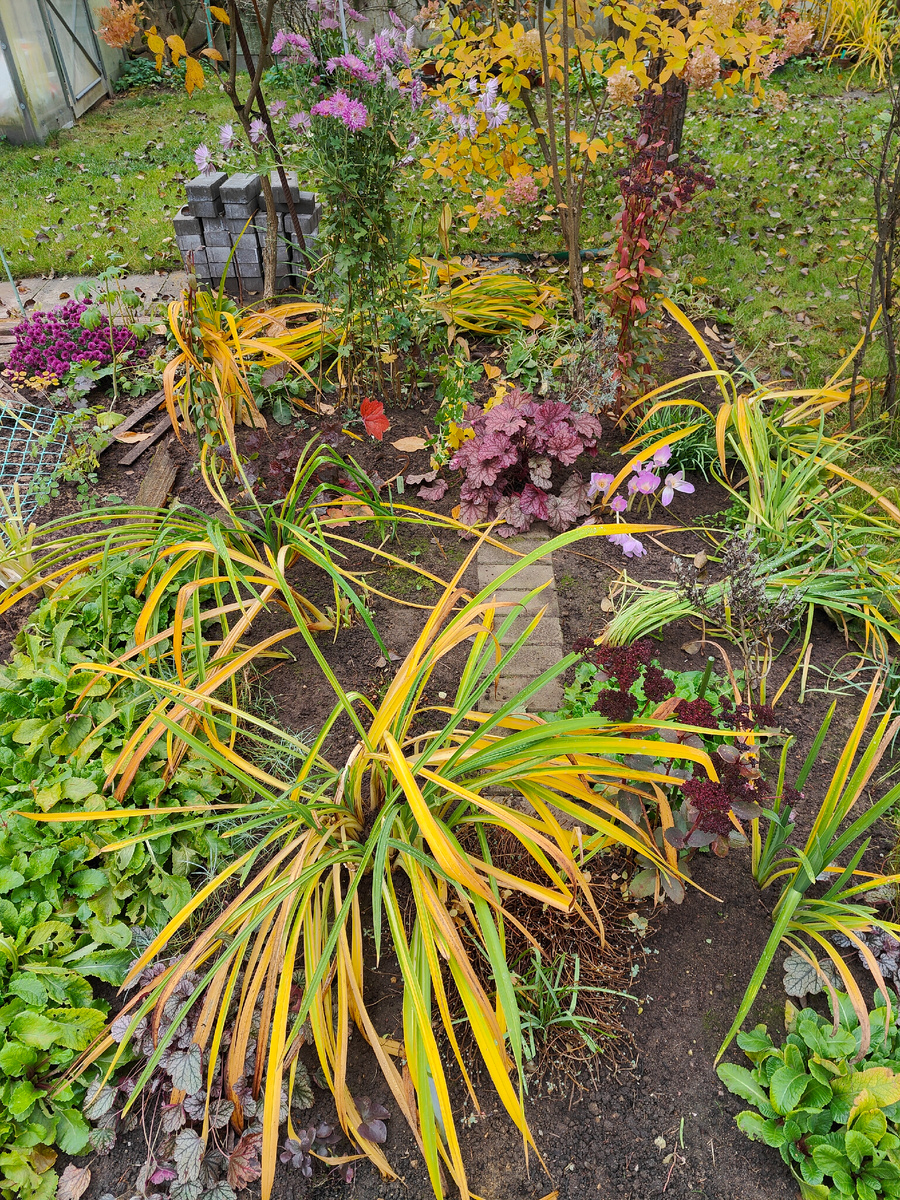 Буквально за один день умудрилась совершить две непростительные для продвинутого садовода ошибки. Обидные. Такие, что даже и начинающий садовод их не совершит. Но вот бес попутал. Октябрь - время обрезки многолетников. Сейчас просто пик этого ежегодного мероприятия. После заморозков у многих растений пожелтели листья, значит, они закончили вегетацию, и пришла пора их обрезать. Не стали исключением и лилейники. Толстые жёлто-зелёные розетки я обрезаю секатором. А совсем жёлтые можно просто потянуть и вырвать не обрезая. Так быстрее. И вот после множества удачных манипуляций произошёл облом: вместе с листьями выдернулись и почки. Линия отрыва идеально ровная, как ножом отрезали. И ведь не сразу поняла, что наделала, дёрнула и вторую розетку. Теперь на следующий год вместо четырех цветоносов у лилейника будет только два оставшихся. Печалька. Тем более, что это один из моих любимчиков - Джордан. Место ему досталось тенистое, и он очень медленно нарастал, буквально в год по одному цветон