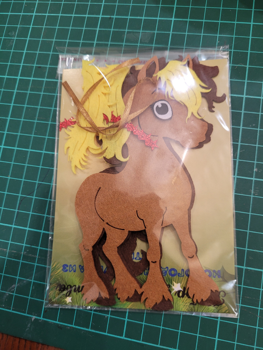 Всем добрый день! Сегодня будем собирать набор из фетра Лошадка. ВНИМАНИЕ! Если детали будет немного помяты, можно прогладить утюгом, фетр отлично гладится. Набор проще всего просто склеить, но для самых ловких можно сшить, будет интереснее. Я буду клеить этим клеем, из ''Фикс прайс'' . Отличный клей, и большой объем. Но можно выбрать любой другой (кроме канцелярского ПВА и клея-карандаша), в том числе и клеевой пистолет. Раскладываем все детали. Первым делом закрепляем ленточку, чтобы нашу игрушку можно подвесить. Сверху приклеиваем вторую большую деталь лошади. Выравниваем по краям, как на фото. Далее приклеиваем гриву, чёлку и хвост. Осталось приклеить глазик, носик, декор и наша Лошадка готова! Приобрести данный набор можно на Вайлдберриз, там же можно найти множество других наборов. Набор для творчества игрушка на елку лошадка символ 2026 FETRiA Показывайте ваших лошадок в комментариях!