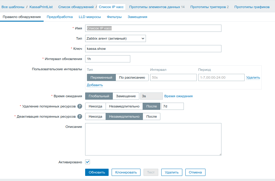 Далее в Zabbix создаем шаблон с обнаружением.
