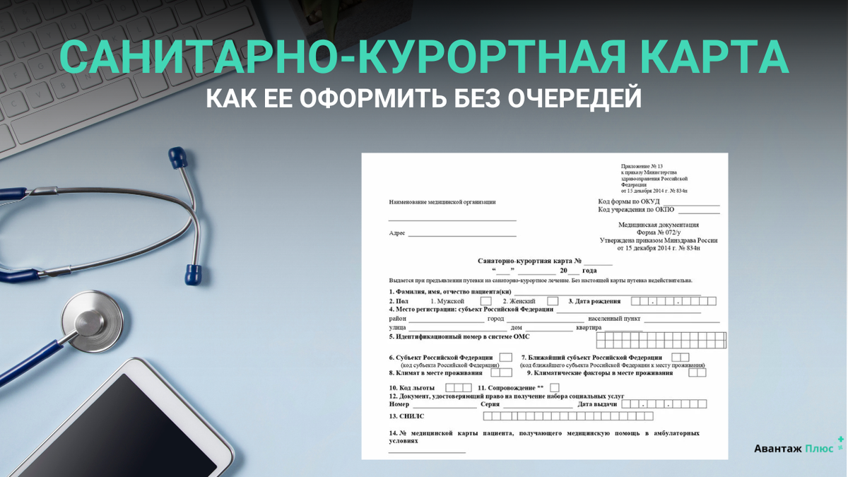 Собираясь в санаторий, вы наверняка слышали о санаторно-курортной карте. Это ключевой документ, без которого вас могут просто не заселить в санаторий. Но что это такое, и как оформить её быстро, без утомительных очередей? Давайте разбираться по порядку. Давайте познакомимся, «ОВТ Авантаж+» – ваш надежный гид в мире оздоровления! Мы компания «ОВТ Авантаж+» уже более 16 лет являемся официальными представителями санаториев РФ. За это время уже более 5000 человек отдохнули и восстановили свое здоровье с нашей помощью. Наша миссия - сделать ваш отдых полезным, а его организацию — продуманной до мелочей и на высочайшем уровне. Узнать о санаториях, свободных местах и забронировать путевку можно на нашем сайте А чтобы не пропускать полезные советы и акции — подписывайтесь на наш Telegram-канал А теперь — к главному вопросу. Санаторно-курортная карта — это официальный медицинский документ, который подтверждает, что у вас нет противопоказаний к лечению и что выбранная программа вам действительн
