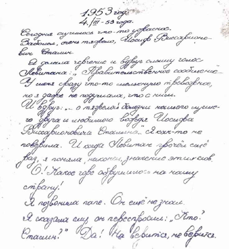 В Самаре нашли дневник советской школьницы, в котором она писала о смерти Сталина. В одном из старых расселенных домов на чердаке нашли дневник девочки, который пролежал там 72 года. В нем подросток ярко и эмоционально описывает событие, потрясшее всю страну в 1953 году: смерть Иосифа Сталина. Каллиграфические записи, тревога и детские переживания - сегодня читатели могут заглянуть в прошлое и увидеть историю глазами ребенка. Эти строки – не просто школьная запись, а живая эмоция ребенка, который стал свидетелем исторического перелома. Фото: «Старая Самара». Обработка: Савин Д. А. https://vk.com/wall-61326818_2546