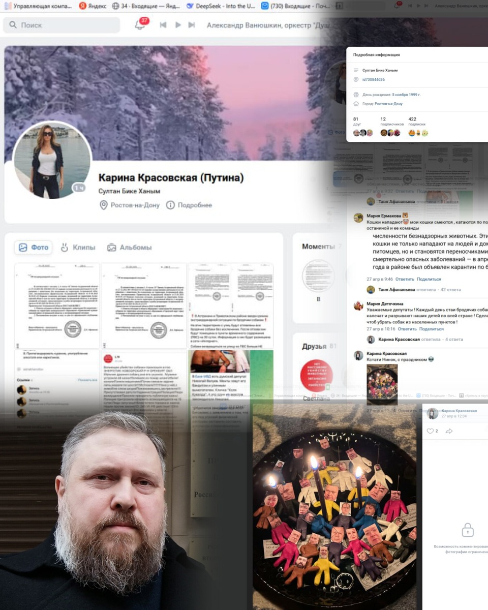 В социальной сети «ВКонтакте» (vk.com) на странице пользователя «Нина Останина» (https://vk.com/nina.ostanina), принадлежащей Депутату Государственной Думы Федерального Собрания Российской Федерации восьмого созыва Председателю Комитета Государственной Думы по защите семьи, вопросам отцовства, материнства и детства, руководителю рабочей группы по вопросам защиты людей от бродячих собак Нине Александровне Останиной, в разделе комментариев к её публикации от 25 апреля 2025 года (https://vk.com/wall313466799_123959?reply=126037&w=wall313466799_123959), содержится крайне опасный комментарий (https://vk.com/wall313466799_123959?reply=126037) от пользователя «Карина Красовская (Путина)» (https://vk.com/id730844636) от 27 апреля 2025 года.