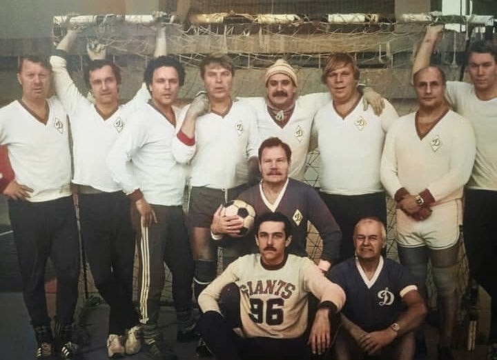 Анатолий Веденкин, Евгений Герасимов, Николай Ерёменко, Михаил Кокшенов, Никита Михалков, Александр Пятков, Александр Пороховщиков, Анатолий Скорякин. Михаил Пуговкин с мячом, Александр Иванов и Николай Иванов. 1980 год.