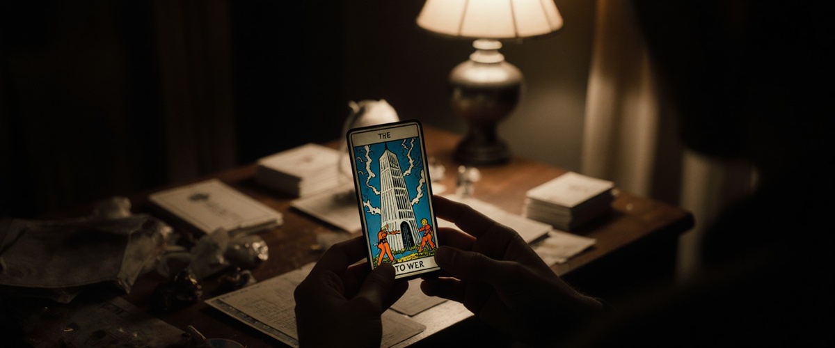 В руке у меня была карта Таро. Одна-единственная. Я не разбираюсь в них, но изображение было красноречивее любых символов. На карте была нарисована Башня, пораженная молнией. С ее вершины падали две человеческие фигурки. Карта была старой, потрепанной, но что-то в ней было не так. Я присмотрелась и почувствовала, как по спине пробежал холодок. Одна из падающих фигурок… на ее руке был шрам, точь-в-точь как у моего мужа Андрея, оставшийся после детской травмы. А под изображением, выцарапанное чем-то острым, стояло число. Сегодняшнее число.