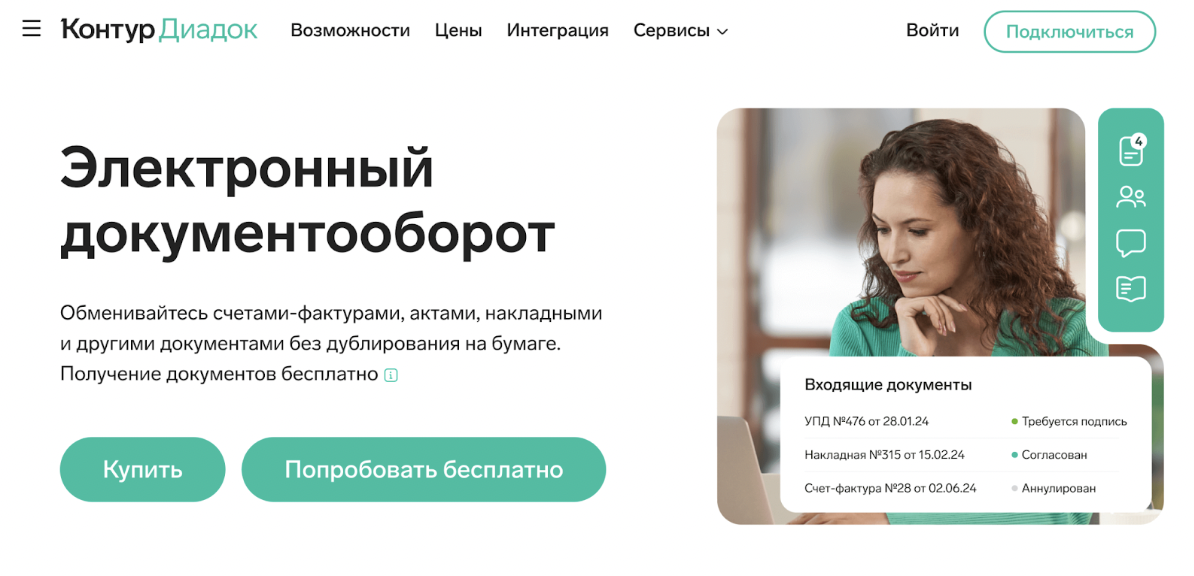 - Диадок — юридически значимый обмен актами и договорами;