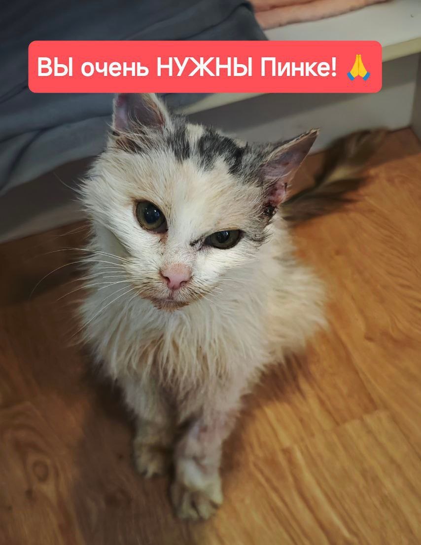 🛑❗ ПИНКИ - истощëнная кошечка из глухой деревни! Она ждала помощи несколько лет!!!💔 ⚡💔Обезвоживание, анемия, образование в ушке, абсцесс, в нескольких областях копится жидкость - и это ещё не весь перечень трудностей, которые выпали на это хрупкое тельце. 🔥Пинки очень ласковая, благодарная кошечка и она - борец! Девочка уже прошла переливание крови и очень хочет жить. Ещё предстоят обследования и она сильно нуждается в нас! 🩷Пожалуйста, поддержите Пинки! 🙏 У неё есть только мы все! Глаза этой девочки смотрят прямо в душу и нам нельзя её подвести!!! 💳Помощь можно оказать на карту Сбербанка, привязана к телефону: +79167903312 Ольга Р. (с пометкой «Пинки») 💬 Чат помощи с фин. отчётом: https://t.me/derevnyasos 🛑🙏 Репост очень важен!