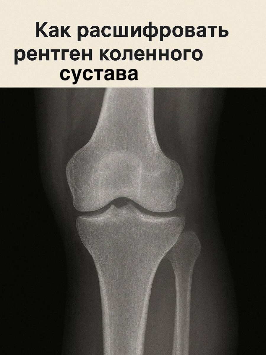 🦵 Как расшифровать рентген коленного сустава Получили снимок, а в заключении непонятные слова? Разберём, что значит каждый термин 👇 📌 1. Суставная щель Это расстояние между костями. Сужена — признак артроза (износ хряща). Расширена — бывает при воспалении или скоплении жидкости. 📌 2. Костные разрастания (остеофиты) Выступы по краям костей — частый спутник артроза. Они ограничивают подвижность и вызывают боль. 📌 3. Субхондральный склероз Уплотнение костной ткани под хрящом. Это ответ организма на повышенную нагрузку. 📌 4. Суставная поверхность В норме — ровная. Если видны неровности или деформации — процесс зашёл далеко. 📌 5. Мягкие ткани и выпот Если врач пишет «выпот в суставе» — значит, есть жидкость, часто при воспалении или травме. 💡 Важно: рентген показывает только кости. Хрящи, связки и мениски лучше видно на МРТ. Если хотите точно понять, насколько поврежден сустав — не делайте выводы сами, покажите снимок врачу-рентгенологу или ортопеду. #рентген #коленосустав #артроз